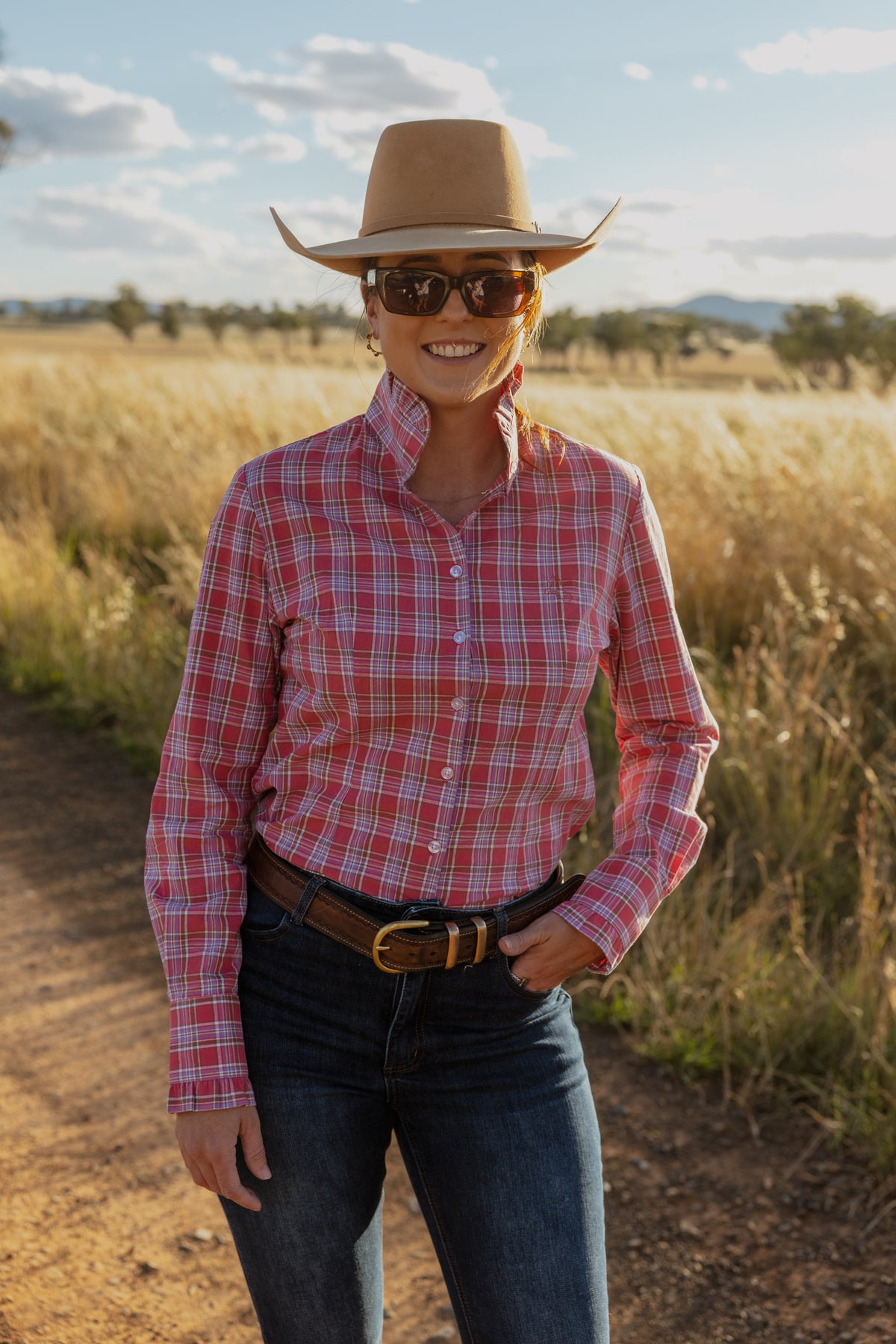 Lilly Shirt - Pink Check embodies refined rural style with a touch of sass. The perfect staple piece, Lilly features delicate detailing and a soft ruffle collar that can be worn multiple ways. Made from 100% cotton, this breathable and durable material makes it suitable for both work and play, transitioning seamlessly from day to night.